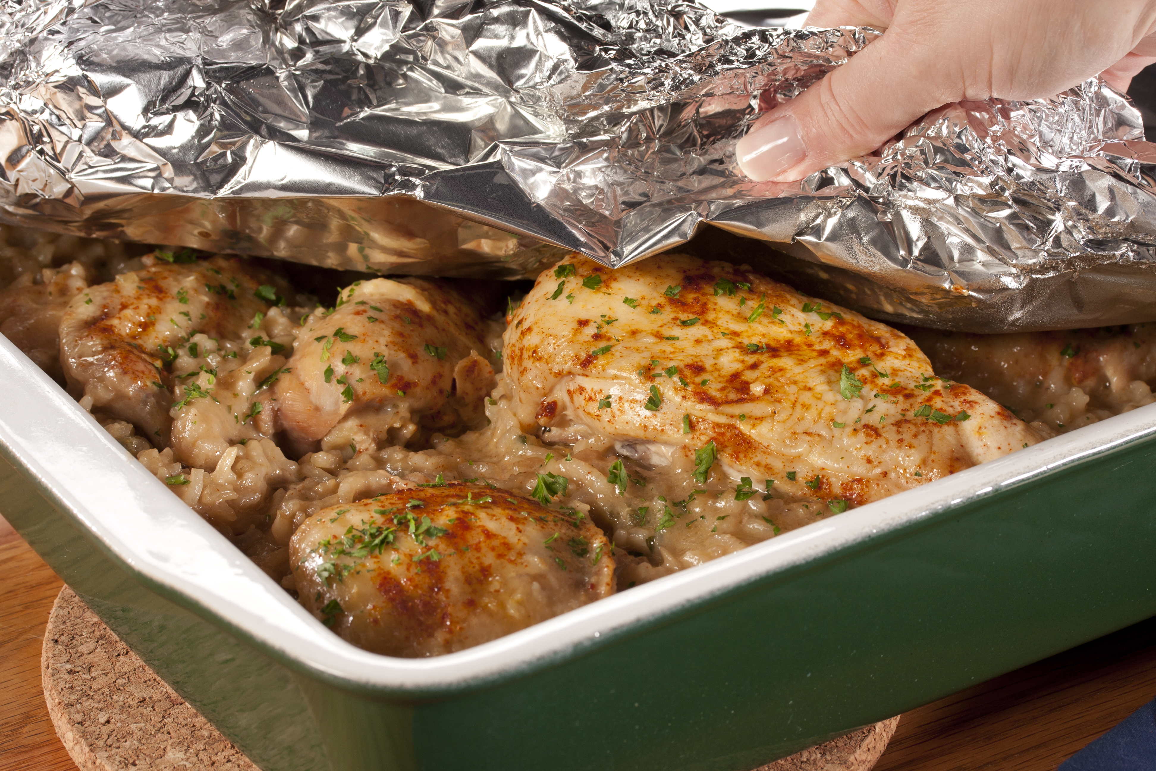 One Pan No Peek Chicken Rice Half Scratched Recipe Creamy Chicken And Rice No Peek Chicken Recipes