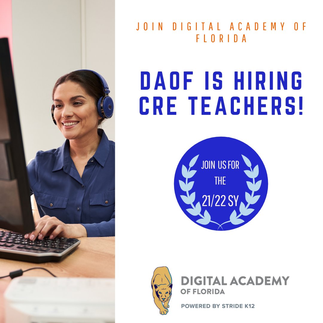 Careersatstride On Twitter Florida Alert Are You Looking For A New Remote Position For The 21 22 School Year Digital Academy Of Florida Daof Is Hiring For Career Amp Technical Education Cre Teachers